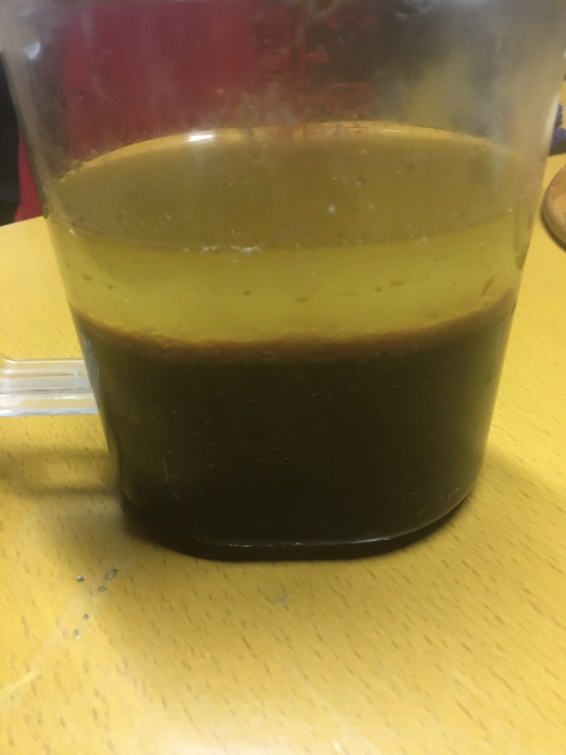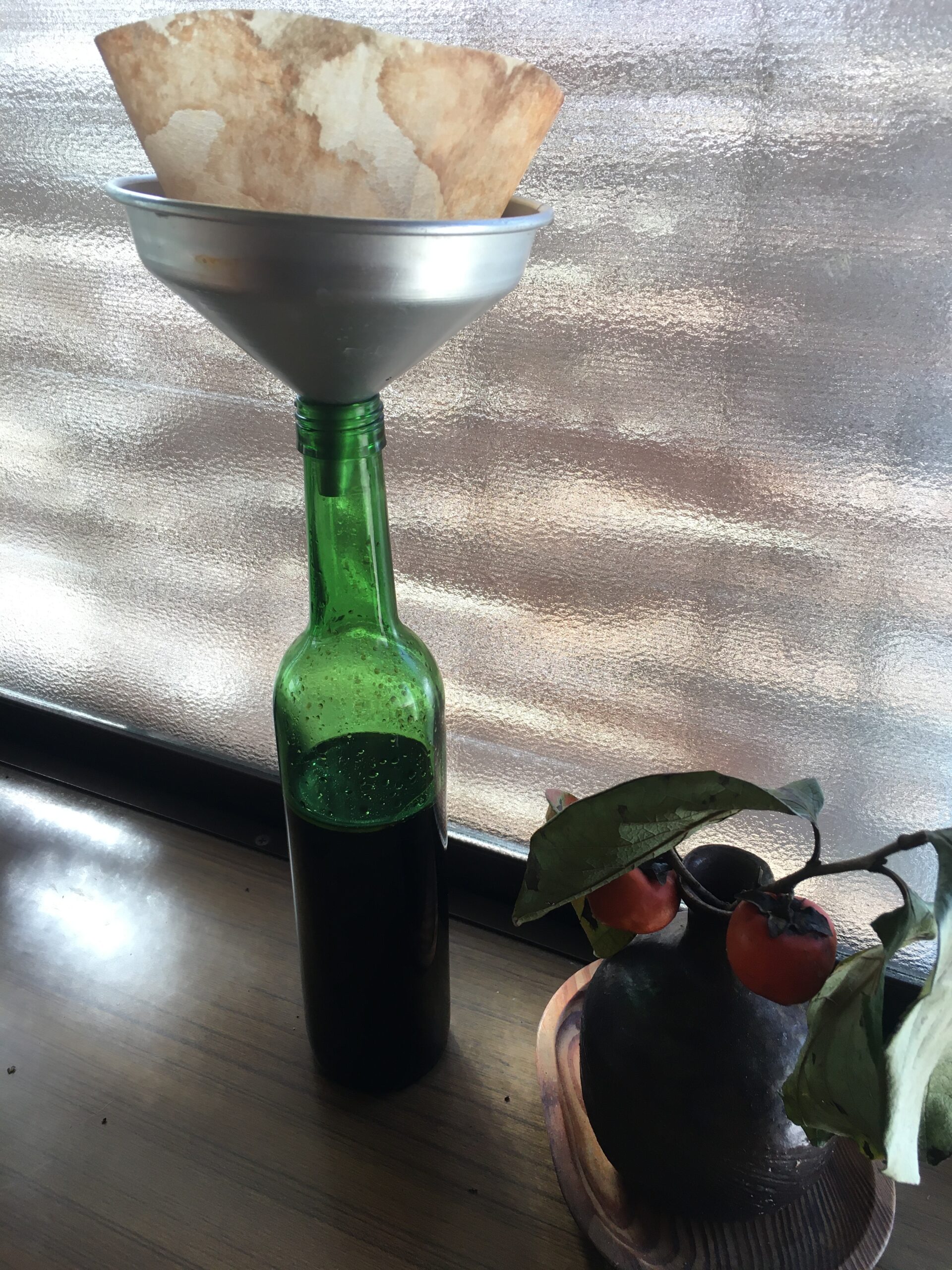 味見が楽しみ!濾過してびっくりしたのは、上澄みは白くて、ほかのは黒いオイル、何故なのかわからない、ルッカは黒いから?