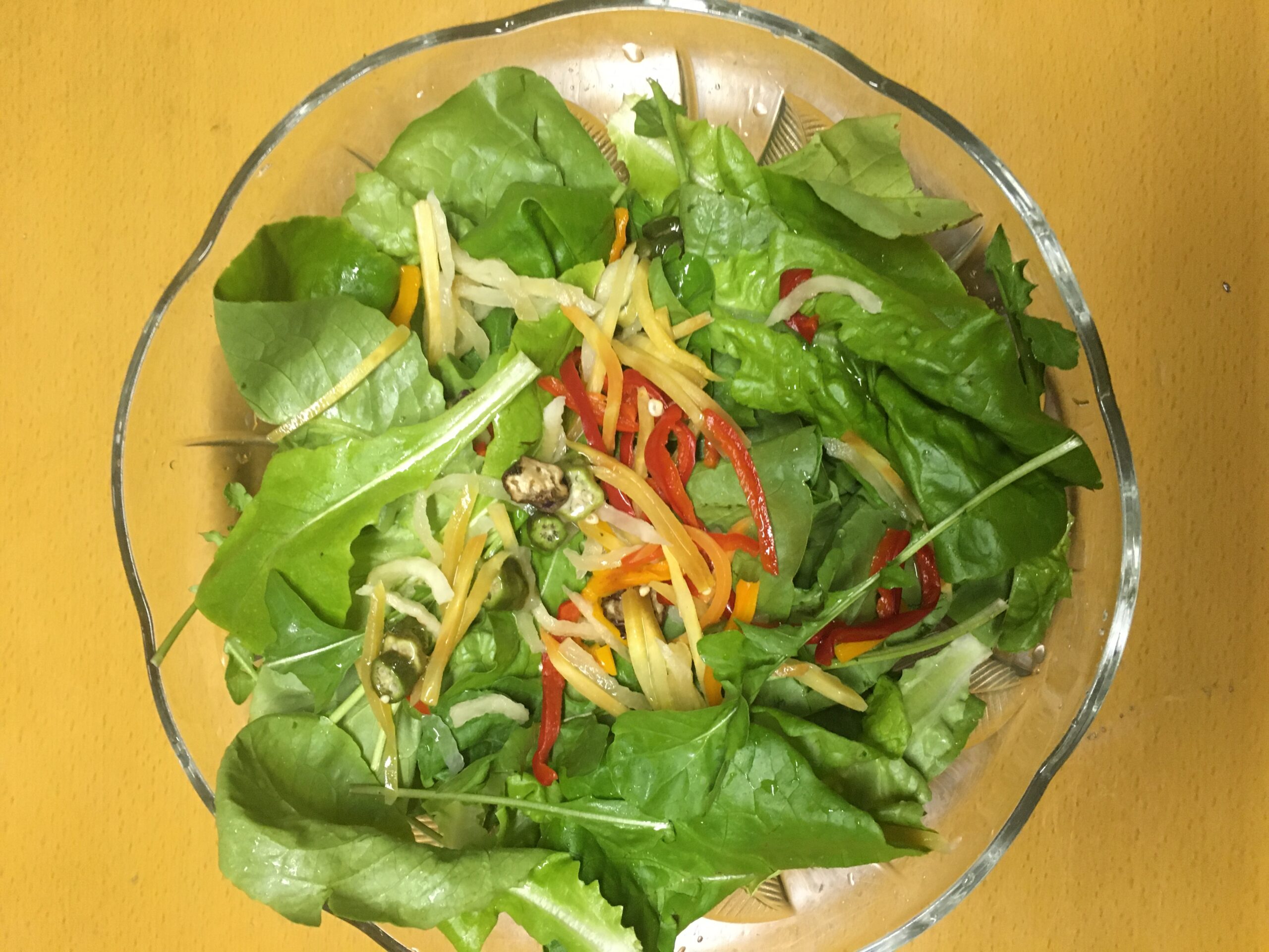自然栽培のサラダ菜とルッコラそして最近購入した卯元幸恵さん作の乾燥野菜を戻して添えて、アルゼンチン風味付け、塩,黒コショウ、檸檬に絵描きの新作のオリ-ブオイルで味見しましたら、最高の贅沢でした。しあわせです、自然に感謝そして皆様にも、ありがとうございます。