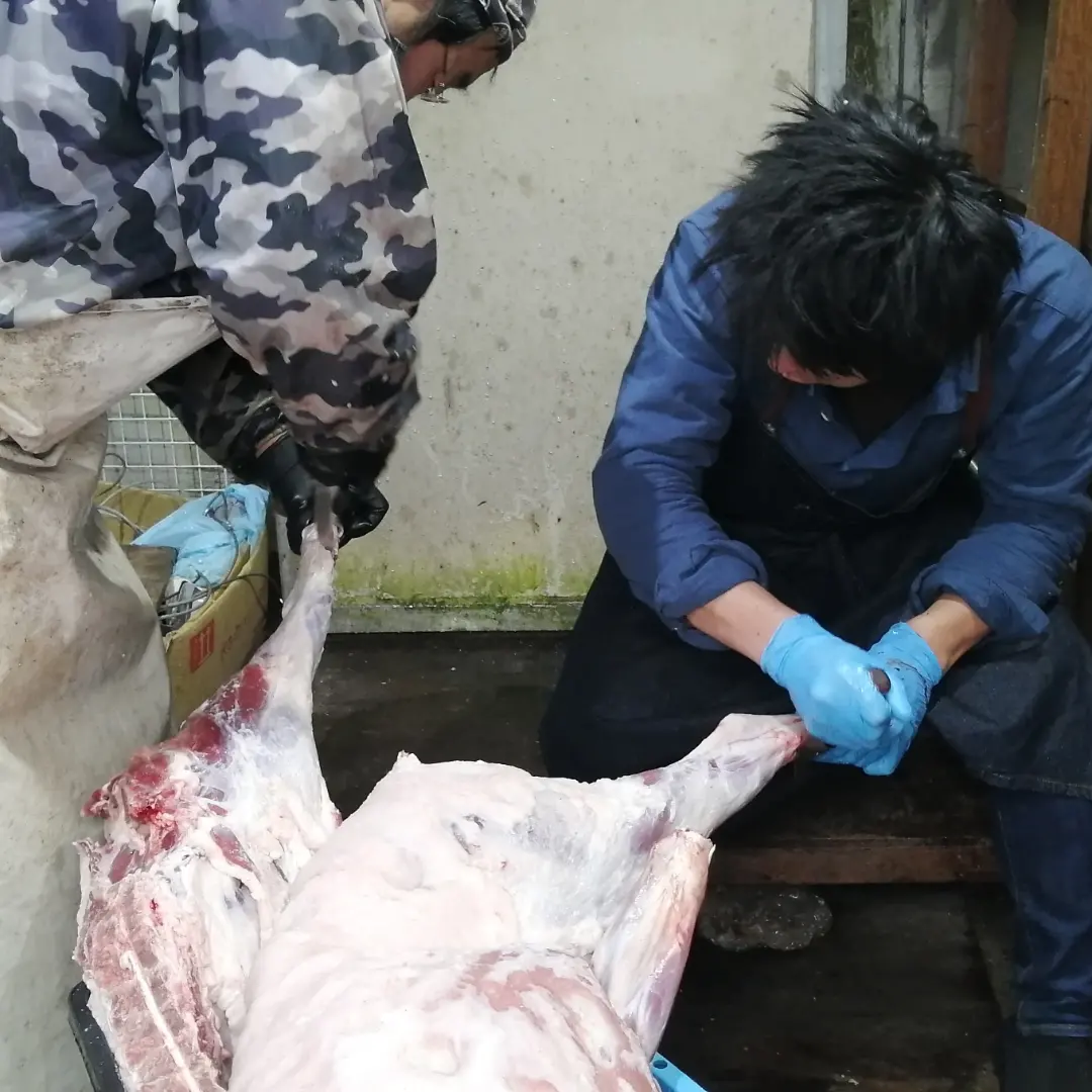 2日間滞在してタイミング逃してしまい止め刺しは見れなかったので皮を剥ぐ所から精肉の分割までさせて頂きました。