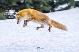 母ギツネがネズミや昆虫などを捕獲する姿をまねて、子ギツネは狩りの術を覚える