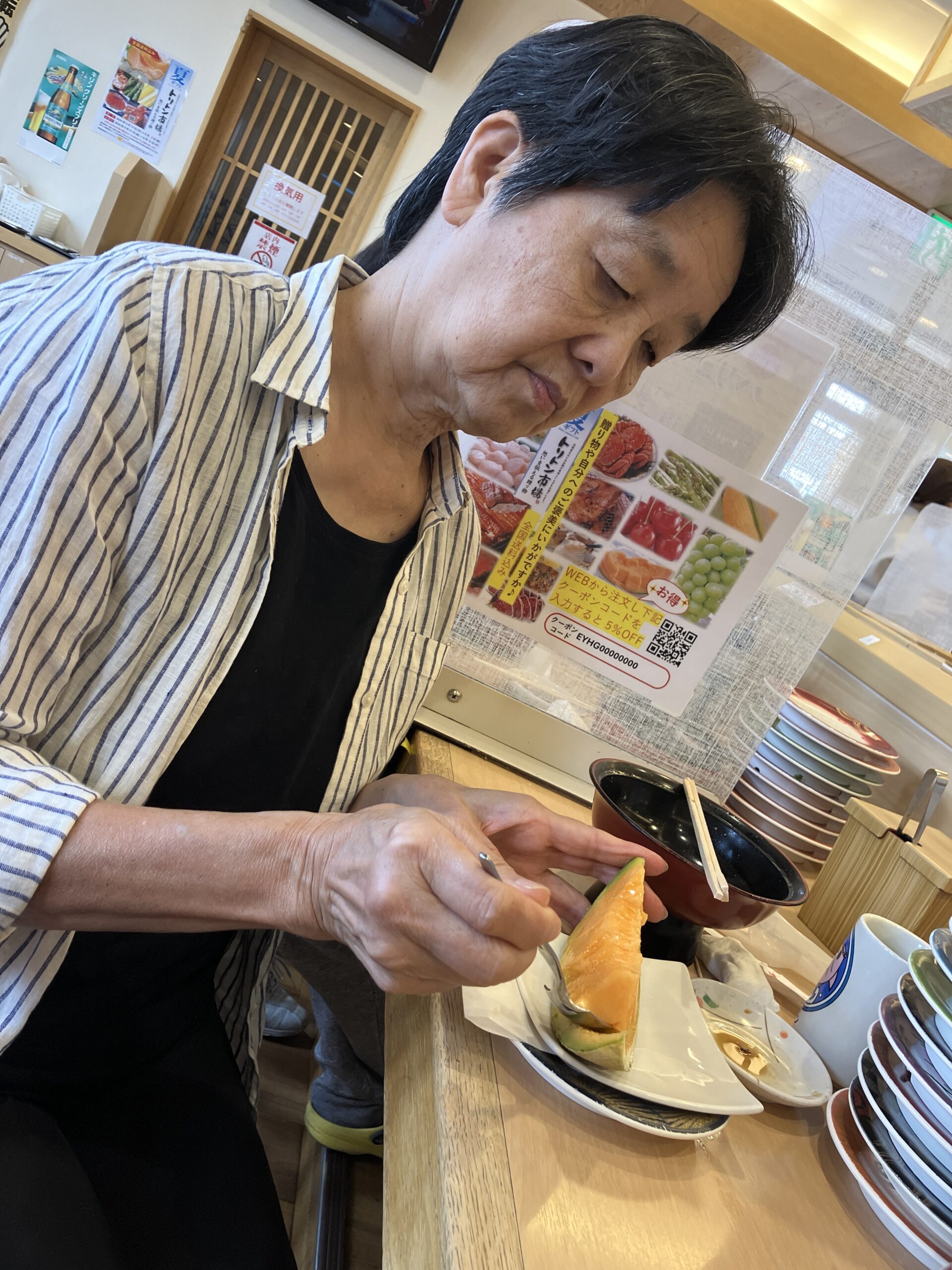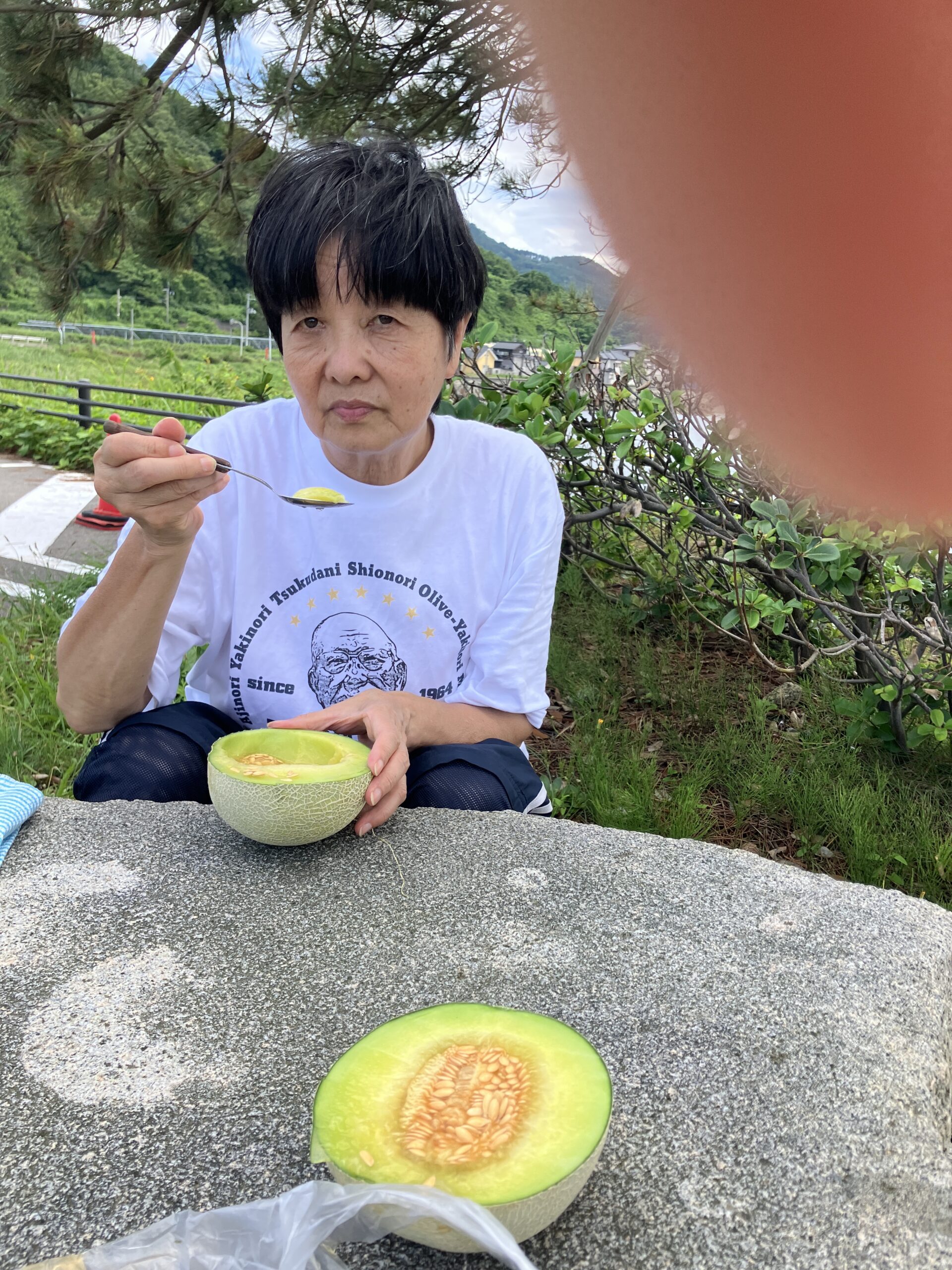 ランチの後にどこかで買ったメロンを豪華に頂く、アルゼンチンでスイカを食べるように